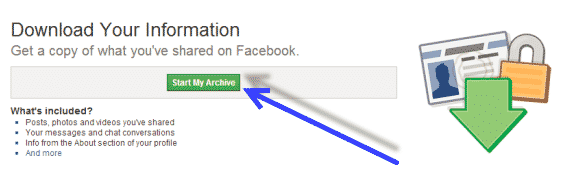 On the following page, you obtain straightforward information regarding your archive content. Facebook stores your photos, video clips, messages, posts as well as a lot more. All you need to do is to click the button claiming "Start my Archive". They will just compress your archive.